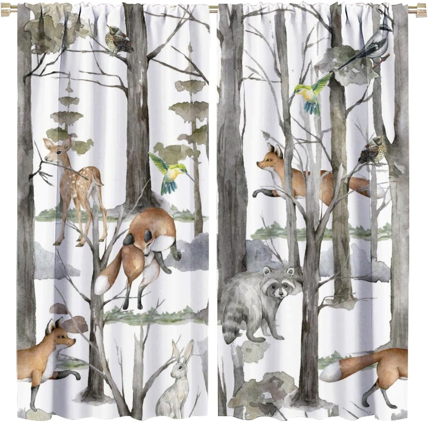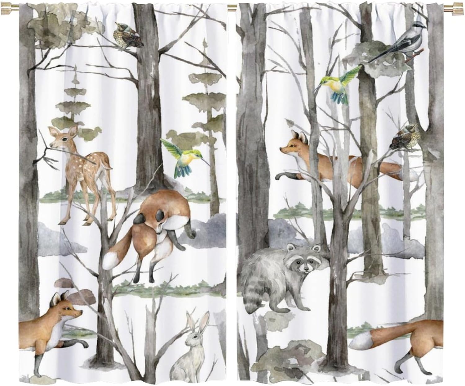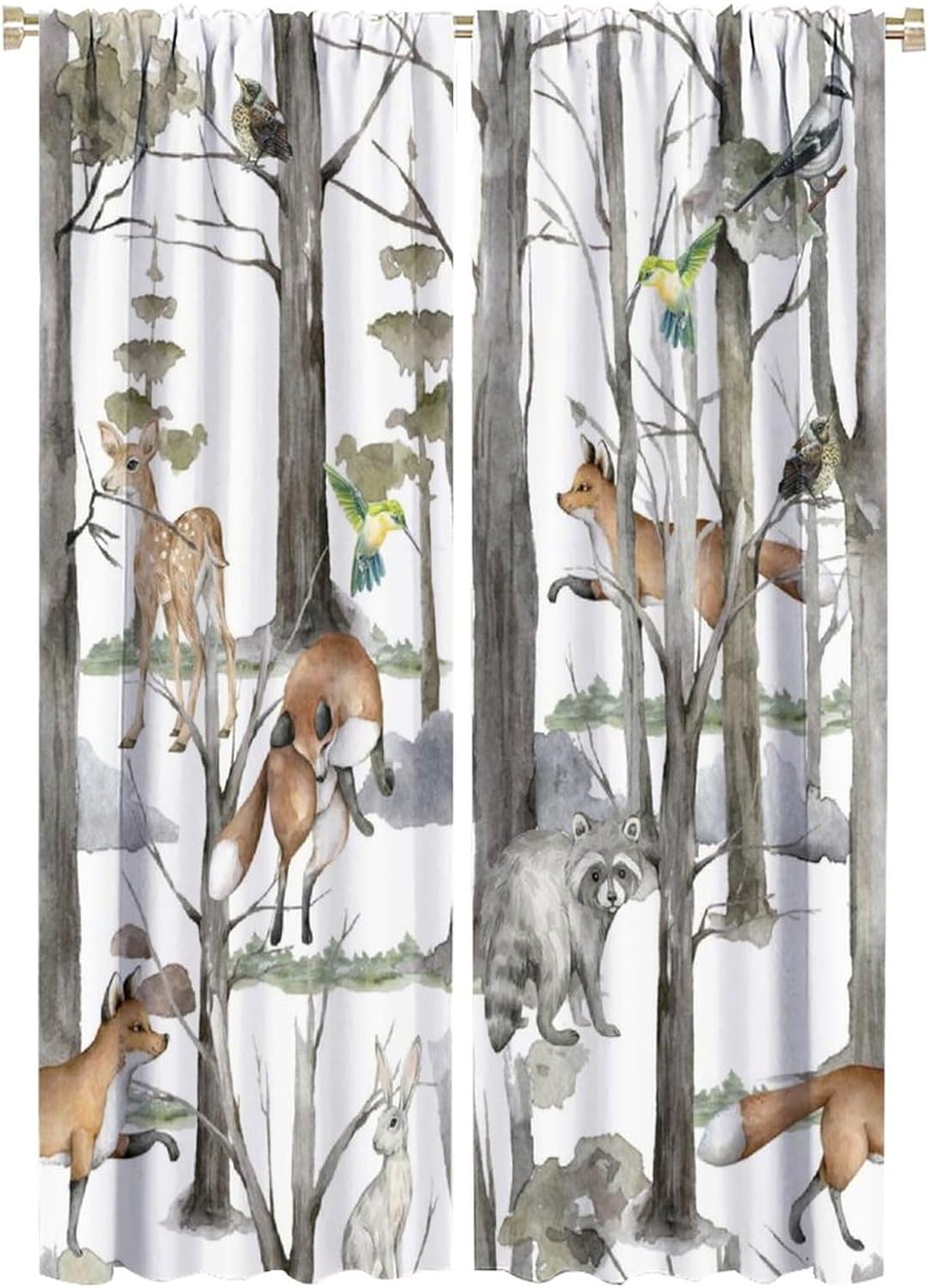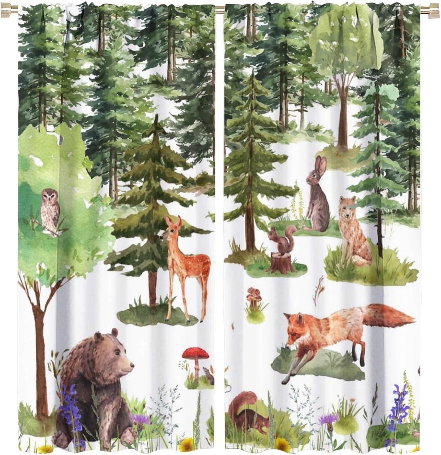 Welcome to our store. Total size: 45" L × 42" W (114cm × 107cm),Includes two pieces,each of which measures:45" length × 21" width (114cm × 53.5cm). Total size: 54" L × 42" W (137cm × 107cm),Includes two pieces,each of which measures:54" length × 21" width (68.5cm × 53.5cm). Total size: 63" L × 42" W (160cm × 107cm),Includes two pieces,each of which measures:63" length × 21" width (160cm × 53.5cm). Total size: 63" L × 55" W (160cm × 140cm),Includes two pieces,each of which measures:63" length × 27.5" width (160cm × 70cm). Total size: 63" L × 63" W (160cm × 160cm),Includes two pieces,each of which measures:63" length × 31.5" width (160cm × 80cm). Total size: 72" L × 63" W (183cm × 160cm),Includes two pieces,each of which measures:72" length × 31.5" width (183cm × 80cm). Total size: 63" L × 72" W (160cm × 183cm),Includes two pieces,each of which measures:63" length × 36" width (160cm × 91.5cm). Total size: 84" L × 84" W (214cm × 214cm),Includes two pieces,each of which measures:84" length × 42" width (214cm × 107cm). People always prefer using some decor to highlight the visual aesthetic. The brebasf Rustic Forest Animals curtains is the beautiful choice for bedroom.Good and Healthy materialOur Watercolor Lodge Cabin Woodland Cartoon Animal Bear Deer Fox curtain is made from a safe and durable polyester fabric ,a healthy choice for any living room.★ 95% polyester fabric.★ Easy to install. Easy to hang.★ Various style theme design,so that the bathroom is full of color and fun.Note1. Please allow a little bit of size deviation due to manual measurement.2. Due to differences in computer monitors,please allow a little bit of color difference between the picture and the object.